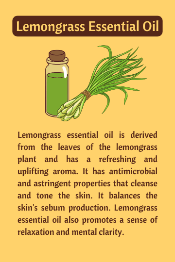 Lemongrass essential oil helps detoxify the skin, leaving it feeling clean and clear. It is a natural astringent, promoting the skin’s elasticity and helping to tone it. The aroma of Rosemary essential oil reduces stress and anxiety levels. Being an antibacterial essential oil, it prevents body odour causing bacteria from thriving on the skin.